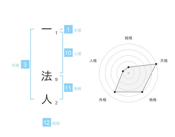 一 法人さんの総格は12画の1点