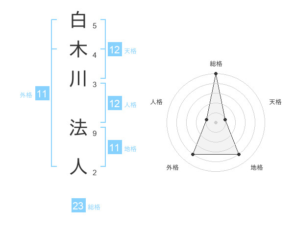 白木川 法人さんの総格は23画の5点!