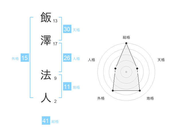 飯澤 法人さんの総格は41画の5点