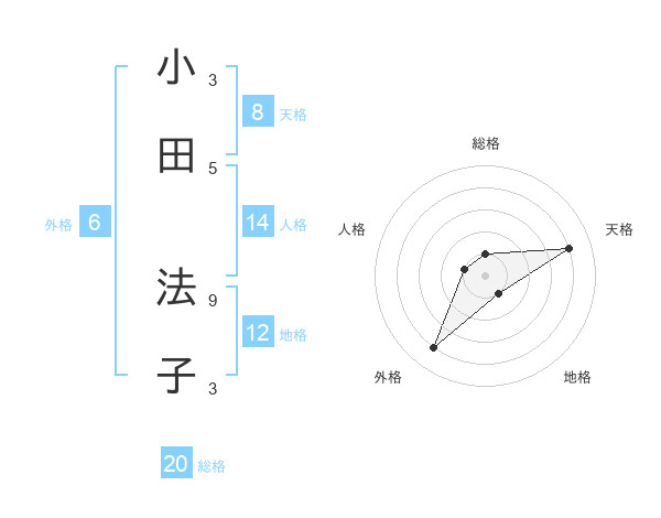小田 法子さんの天格は8画の4点!