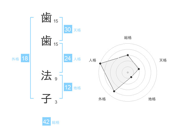 歯歯 法子さんの天格は30画の2点!