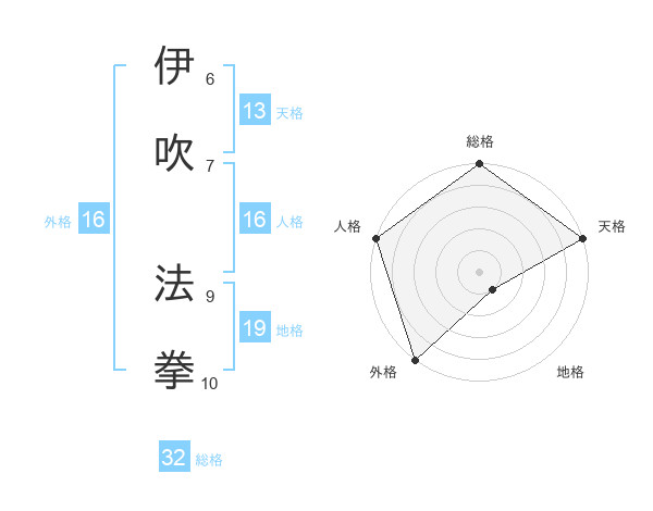 伊吹 法拳さんを姓名の画数から五運を鑑定