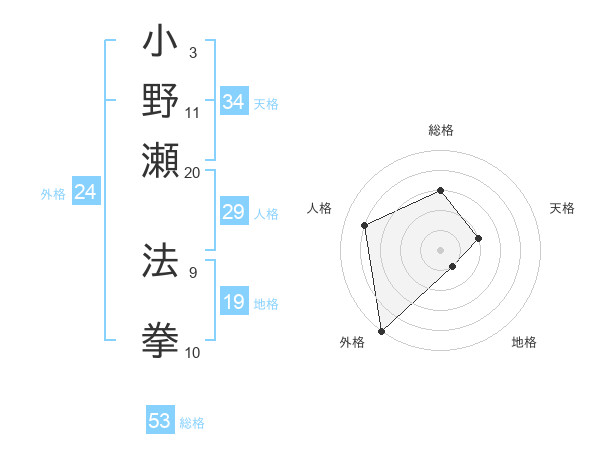 小野瀬 法拳さんを姓名の画数から五運を鑑定