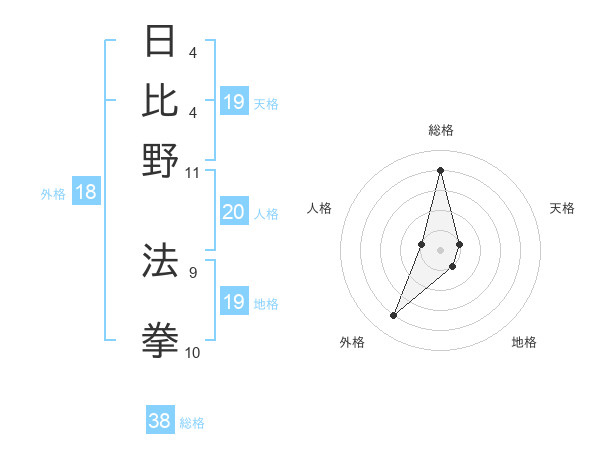日比野 法拳さんを姓名の画数から五運を鑑定