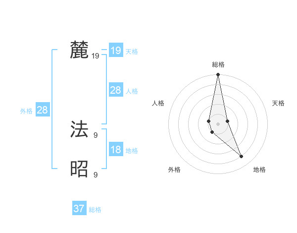 麓 法昭さんの天格は19画の1点!