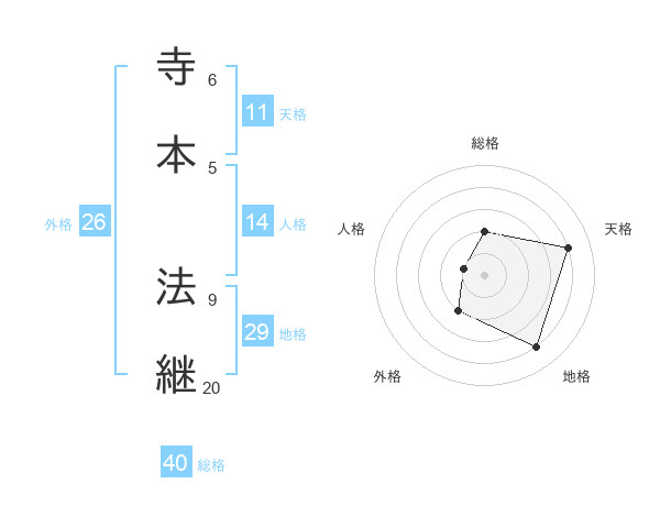 寺本 法継さんを姓名の画数から五運を鑑定