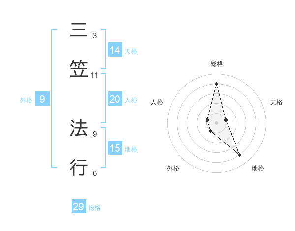三笠 法行さんの総格は29画の4点!