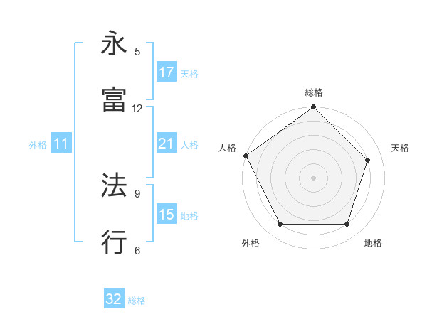 永富 法行さんの総格は32画の5点!