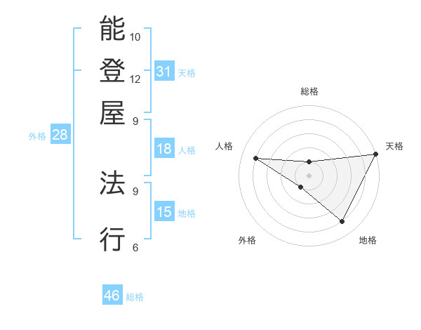 能登屋 法行さんを姓名の画数から五運を鑑定