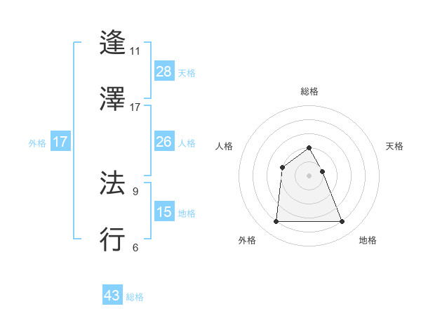 逢澤 法行さんを姓名の画数から五運を鑑定
