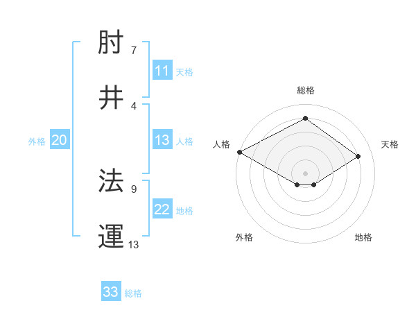 肘井 法運さんの総格は33画の4点!
