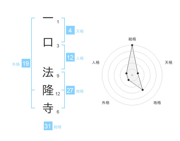 一口 法隆寺さんの総格は31画の5点!