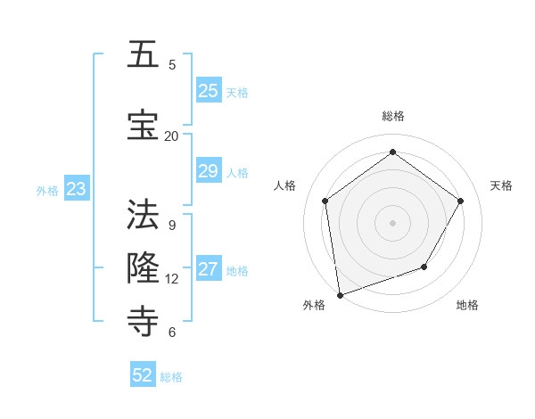 五宝 法隆寺さんの総格は52画の4点!