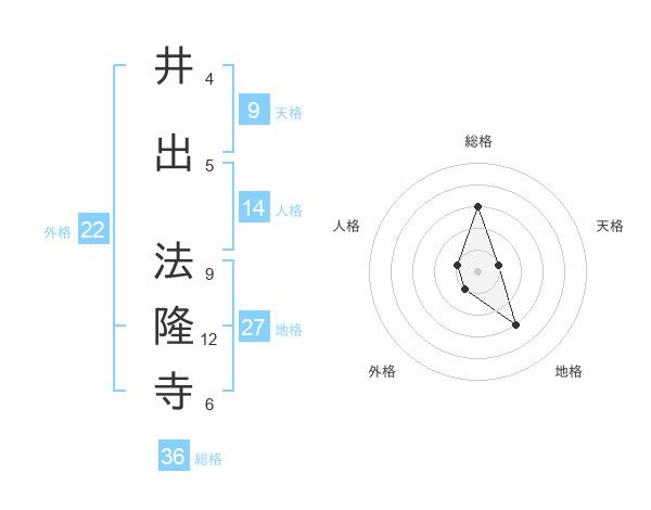 井出 法隆寺さんの総格は36画の3点!
