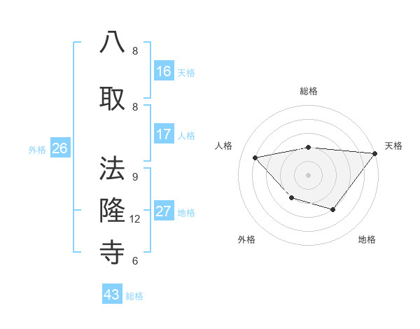 八取 法隆寺さんの天格は16画の5点!
