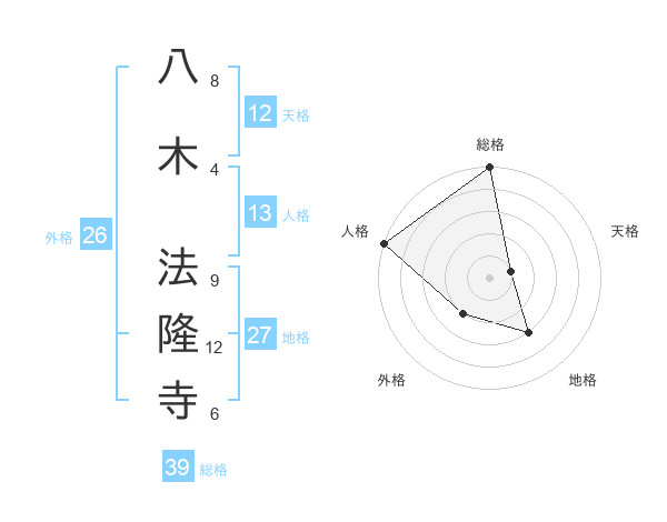 八木 法隆寺さんの総格は39画の5点!