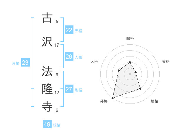 古沢 法隆寺さんの総格は49画の2点!