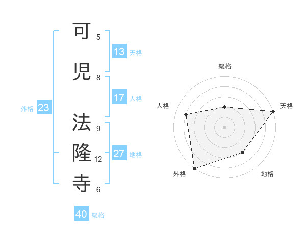 可児 法隆寺さんを姓名の画数から五運を鑑定