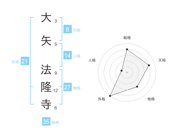大矢 法隆寺さんを姓名の画数から五運を鑑定