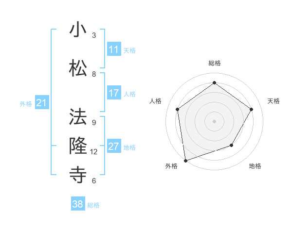 小松 法隆寺さんを姓名の画数から五運を鑑定
