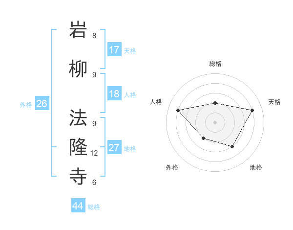 岩柳 法隆寺さんを姓名の画数から五運を鑑定