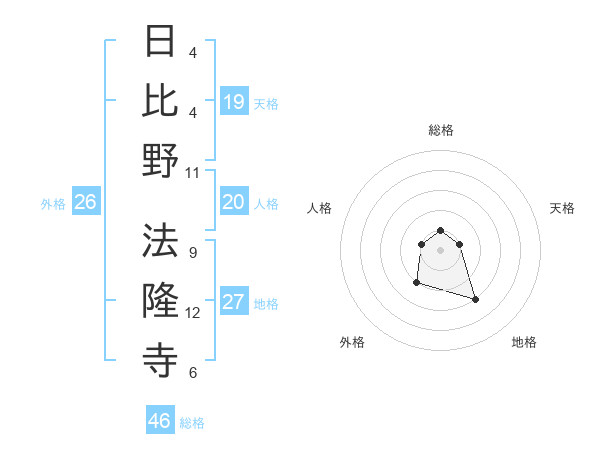 日比野 法隆寺さんを姓名の画数から五運を鑑定