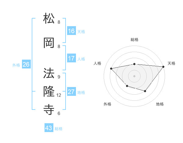松岡 法隆寺さんを姓名の画数から五運を鑑定