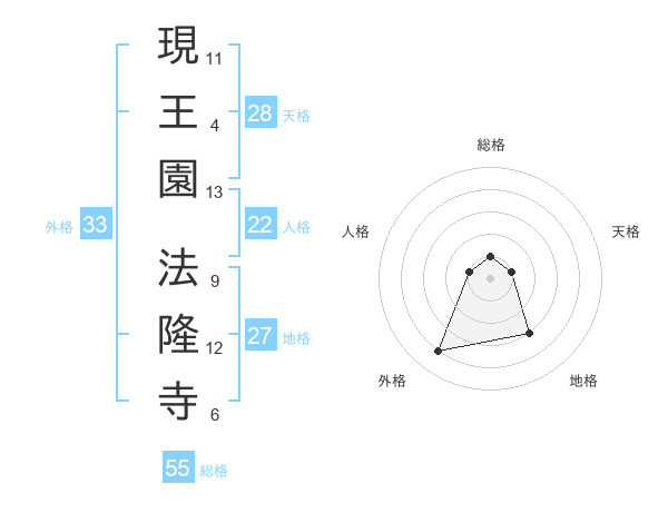 現王園 法隆寺さんを姓名の画数から五運を鑑定
