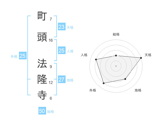 町頭 法隆寺さんを姓名の画数から五運を鑑定