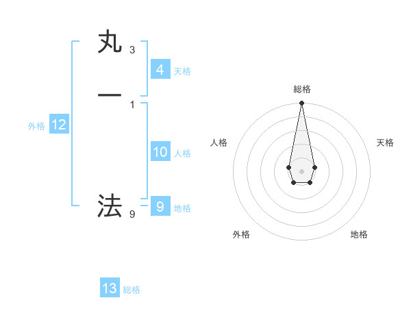 丸一 法さんの総格は13画の5点!
