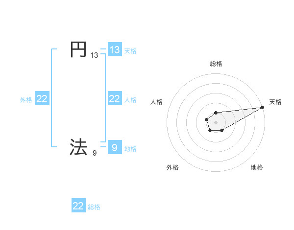 円 法さんの総格は22画の1点!