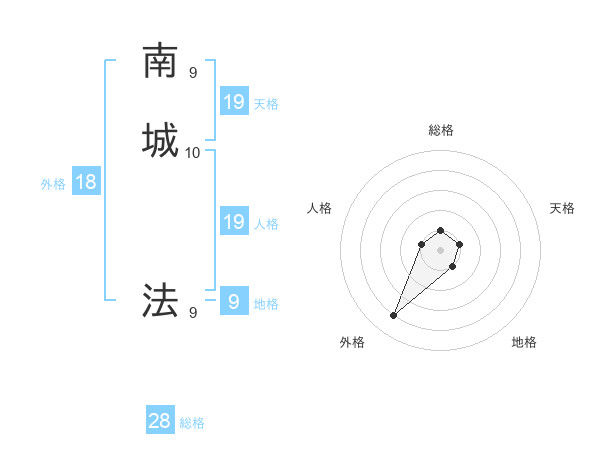 南城 法さんの天格は19画の1点!