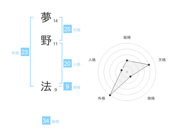 夢野 法さんの外格は23画の5点!