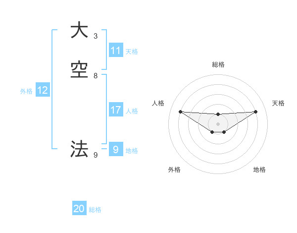 大空 法さんの総格は20画の1点!