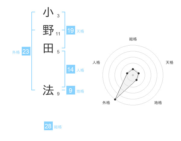 小野田 法さんの外格は23画の5点!