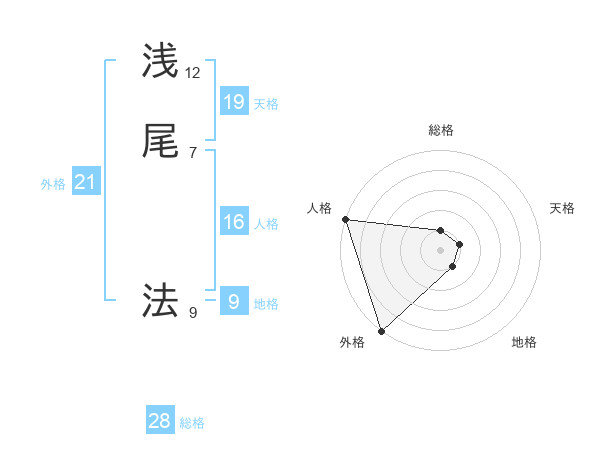 浅尾 法さんの天格は19画の1点!