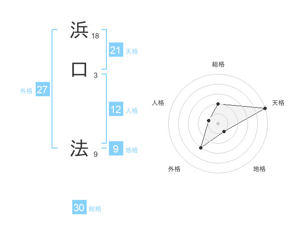 浜口 法さんの総格は30画の2点!