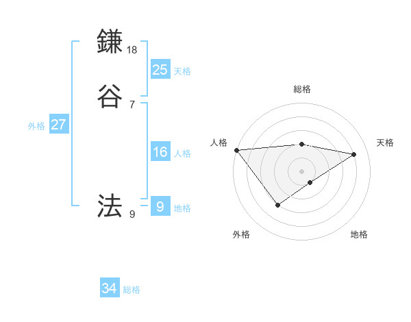 鎌谷 法さんの総格は34画の2点!