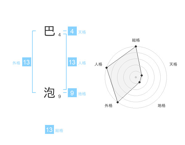 巴 泡さんの総格は13画の5点!
