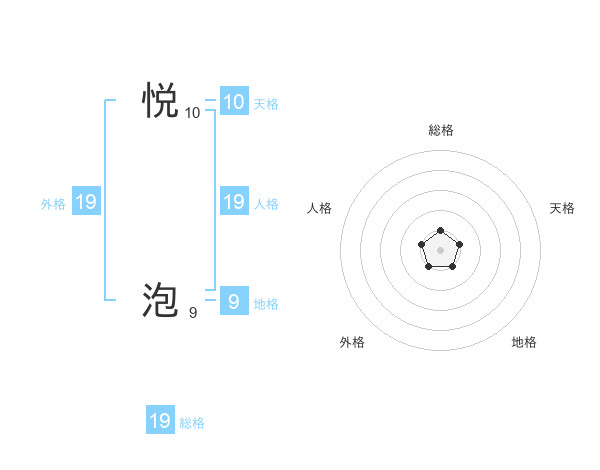 悦 泡さんの総格は19画の1点!