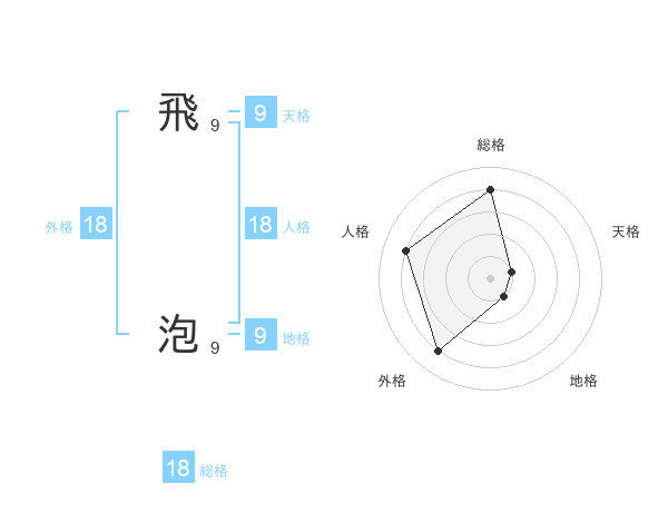 飛 泡さんの総格は18画の4点!
