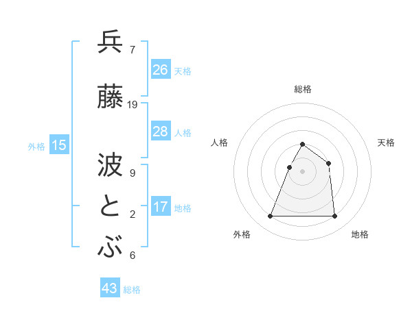 兵藤 波とぶさんを姓名の画数から五運を鑑定