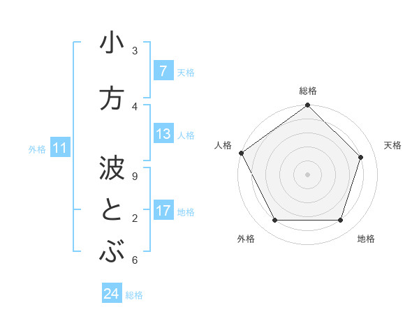 小方 波とぶさんを姓名の画数から五運を鑑定