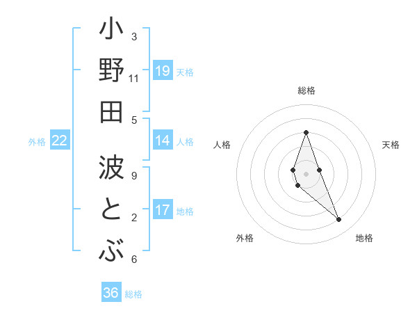 小野田 波とぶさんを姓名の画数から五運を鑑定