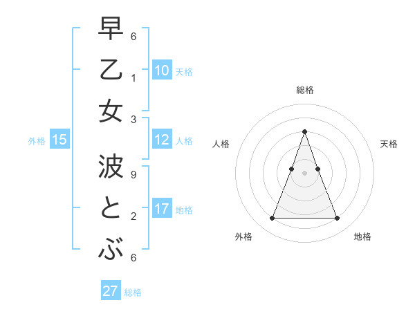 早乙女 波とぶさんの総格は27画の3点