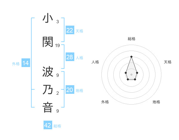 小関 波乃音さんを姓名の画数から五運を鑑定