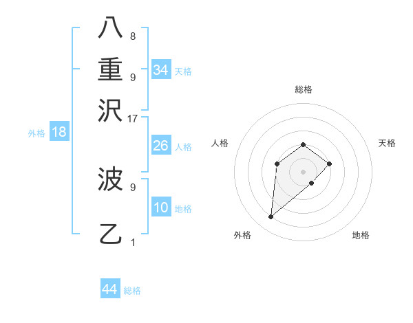 八重沢 波乙さんを姓名の画数から五運を鑑定