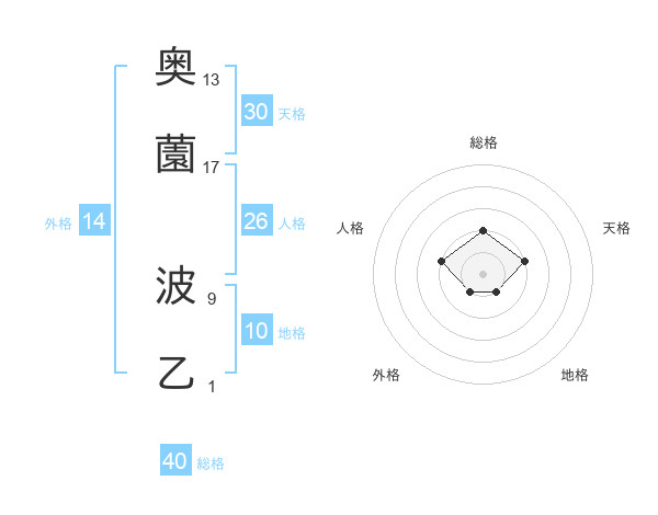 奥薗 波乙さんの総格は40画の2点!