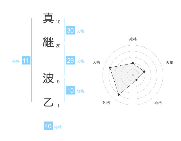 真継 波乙さんの総格は40画の2点!