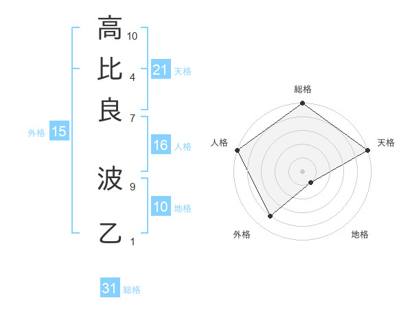 高比良 波乙さんの天格は21画の5点!